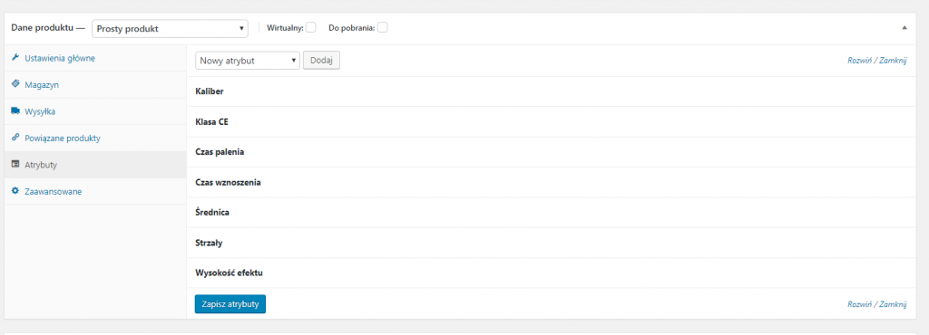 Domyślnie podczas konfiguracji produktu mamy do wyboru checkboxy „wirtualny” i „Do pobrania”. Teoretycznie nie przeszkadzają ale mniej doświadczonemu użytkownikowi mogą